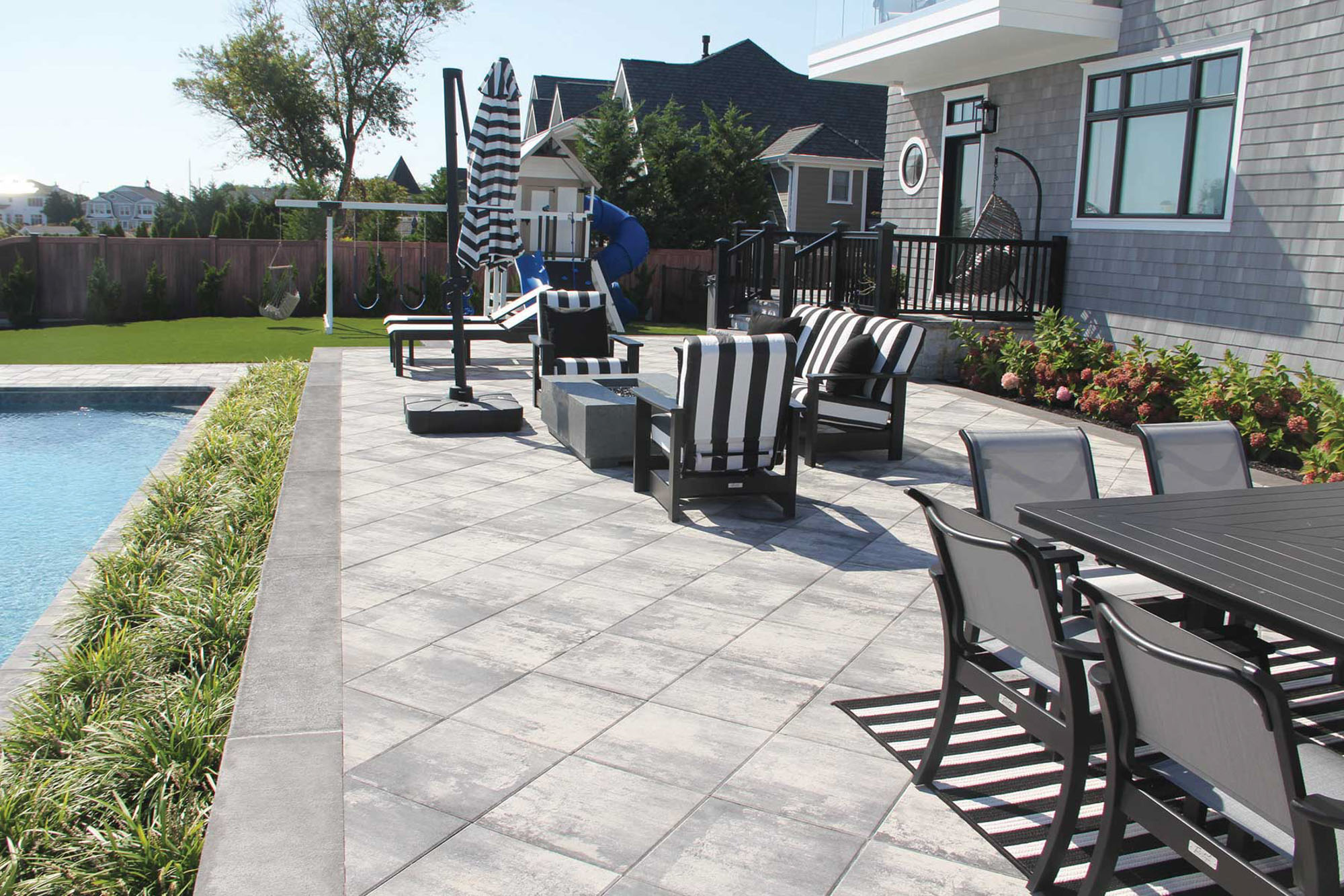 You can define these zones visually by using Nicolock pavers in different laying patterns, textures, or contrasting borders. Each section stays connected while maintaining a unique purpose.