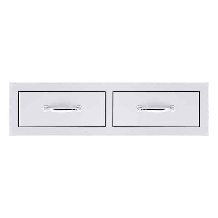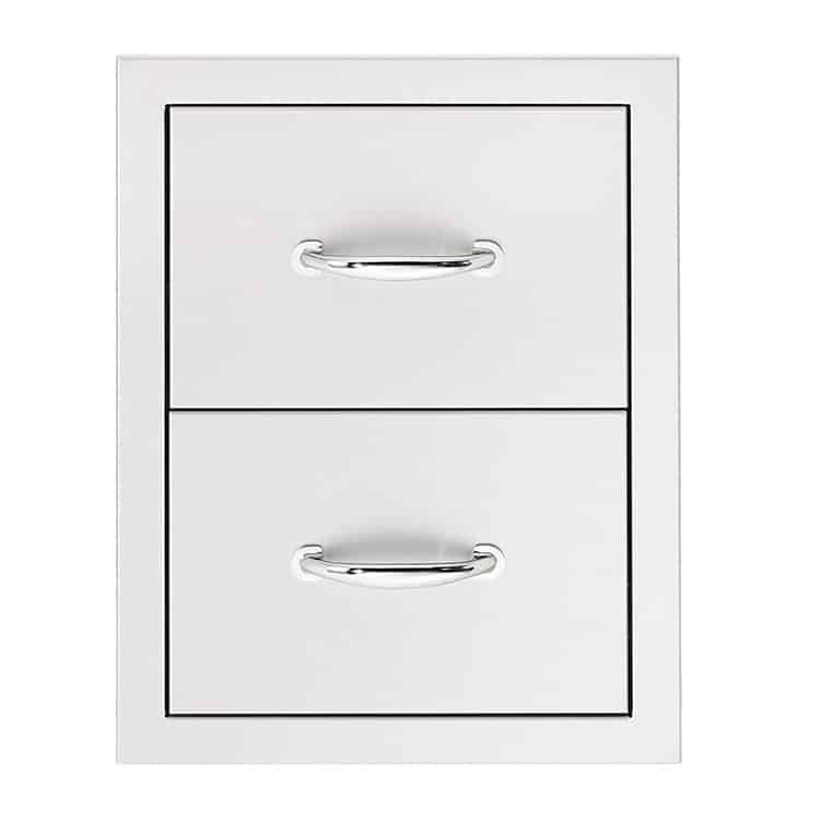 Put an end to rummaging, running inside and general frustration with the right outdoor kitchen add-ons. We offer more than 20 stylish ways to organize your dining space. Our standard 17-inch outdoor drawer is available in single, double and triple-drawer stacked designs. Other solutions include utensil drawers, double horizontal drawers, warming drawers and fuel storage drawers. If you need good kitchen island cabinets, create them with horizontal and vertical doors in several sizes plus double doors and propane tank access doors.