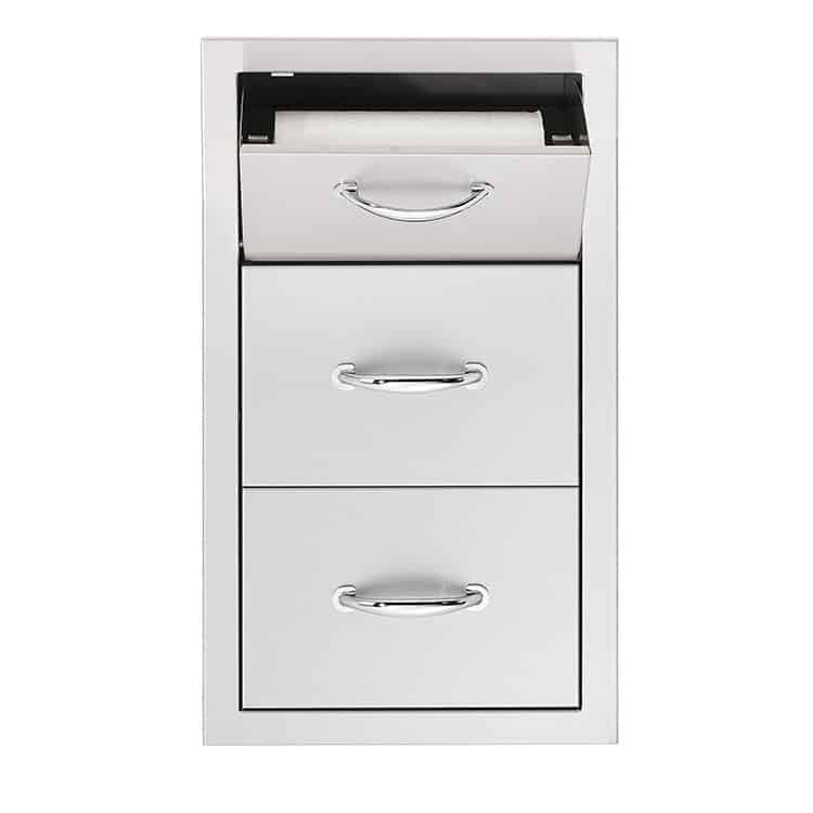 Outdoor cabinets with drawers are a great way to simplify installation. These combos include an access door plus two or more drawers in a single space-saving unit. You’ll also find specialty attachments such as two-bin trash drawers and paper towel holders. Our outdoor kitchen storage products are so functional and stylish that some people want them for their indoor kitchens, too. They’re part of a complete outdoor dining collection to enhance your property for summer entertaining.