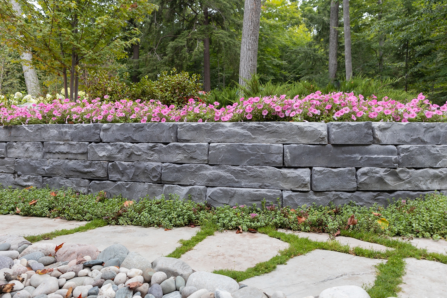 Nicolock Paving Stones retaining wall systems are available in several deep, rich color patterns. Our advanced blending technique ensures the colors run throughout the stone, coordinating with your surroundings for decades to come.